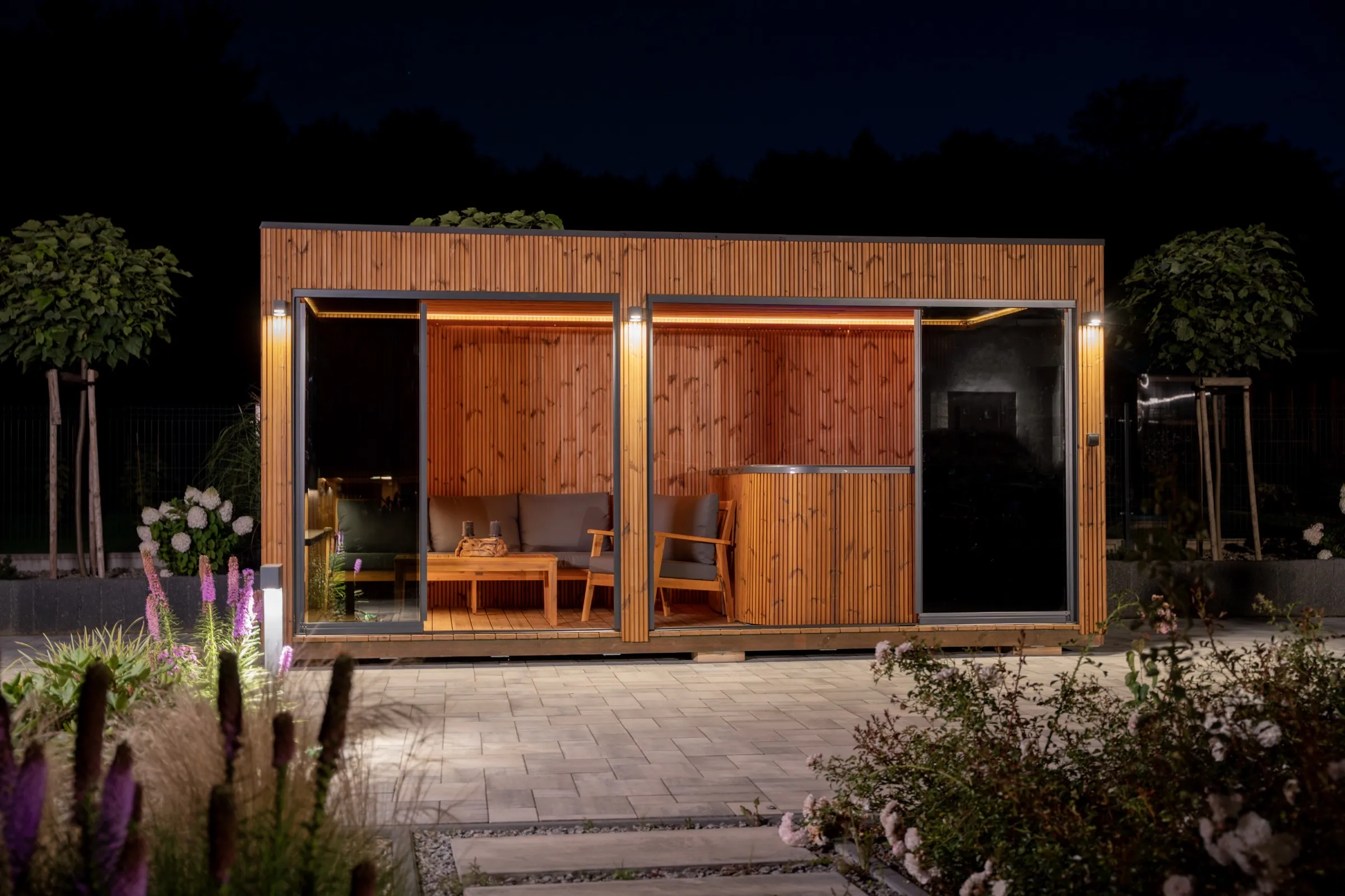 Przeszklone ściany, ciepłe oświetlenie LED i naturalne materiały sprawiają, że każda chwila spędzona w altanie staje się wyjątkowa. To przestrzeń, w której naprawdę można zwolnić tempo.