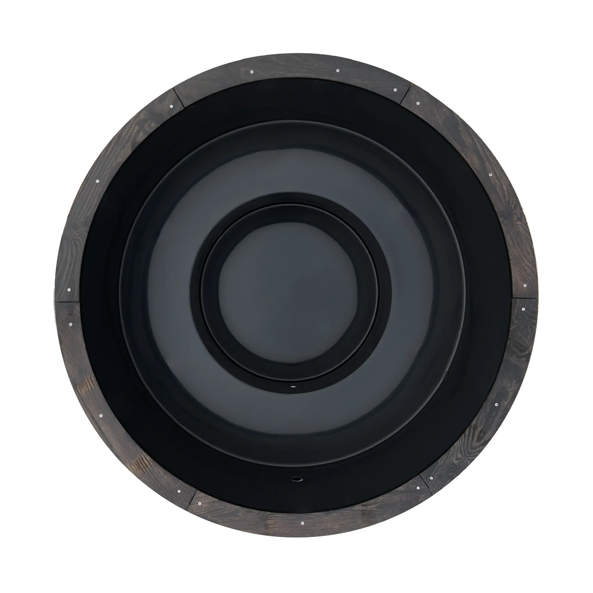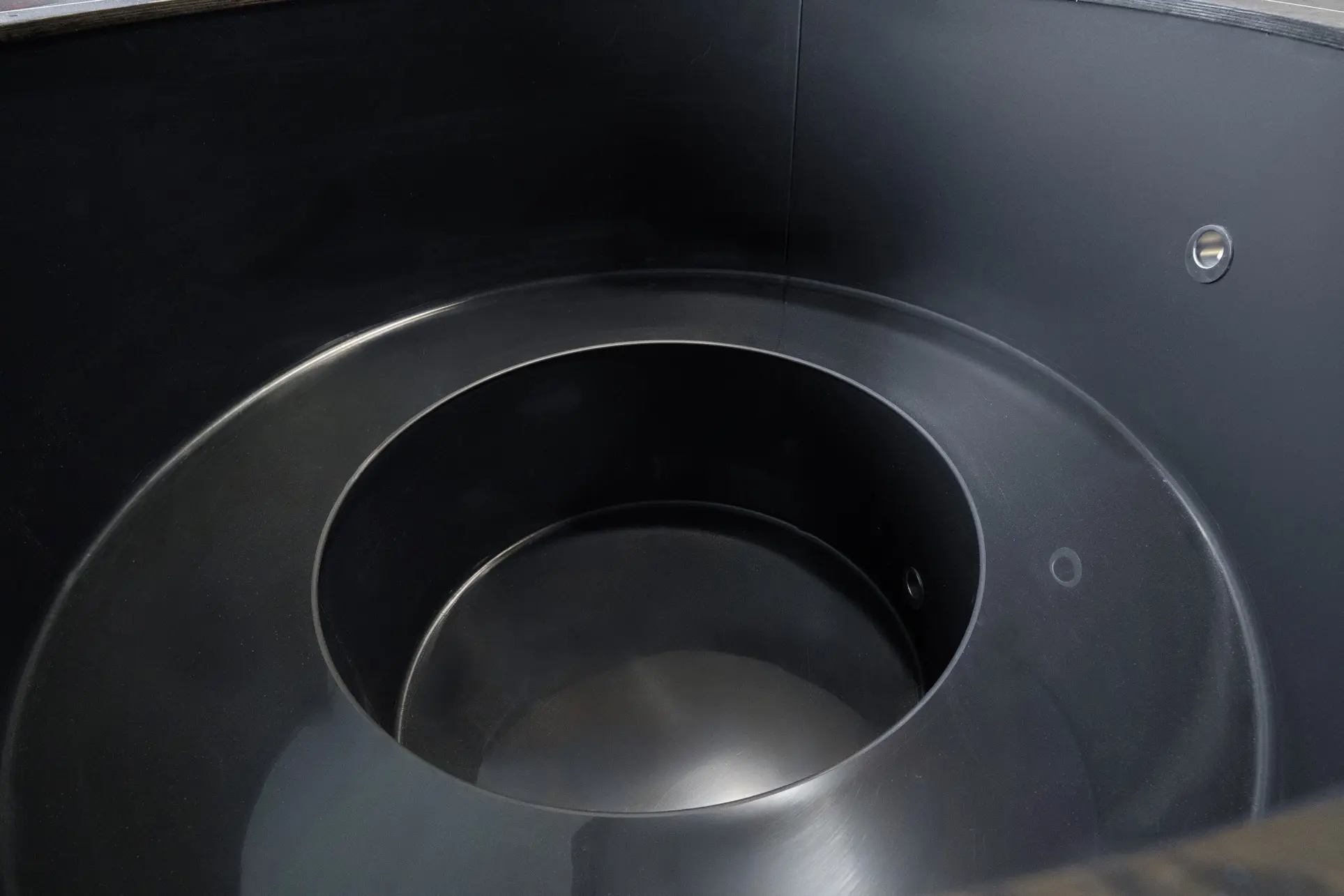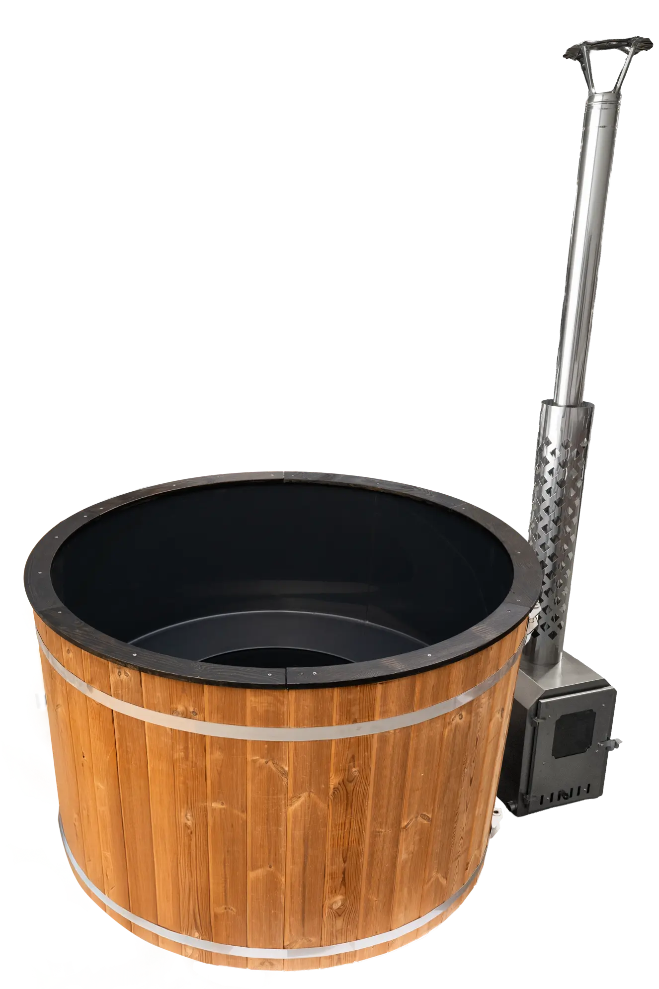 Balia o średnicy 160 cm została ręcznie wykonana z Thermo Drewna. Wyposażona jest w plastikowy wkład całkowicie zapobiegający przeciekaniu oraz blaszany piec z szybą i termometrem, służący do podgrzewania wody.