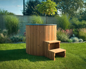 Umieszczona w ogrodzie balia schładzająca będzie świetnym dopełnieniem sauny lub klasycznej balii ogrodowej. Dzięki kompaktowym wymiarom i naturalnemu wyglądowi doskonale wpasuje się zarówno w nowoczesną, jak i rustykalną przestrzeń.