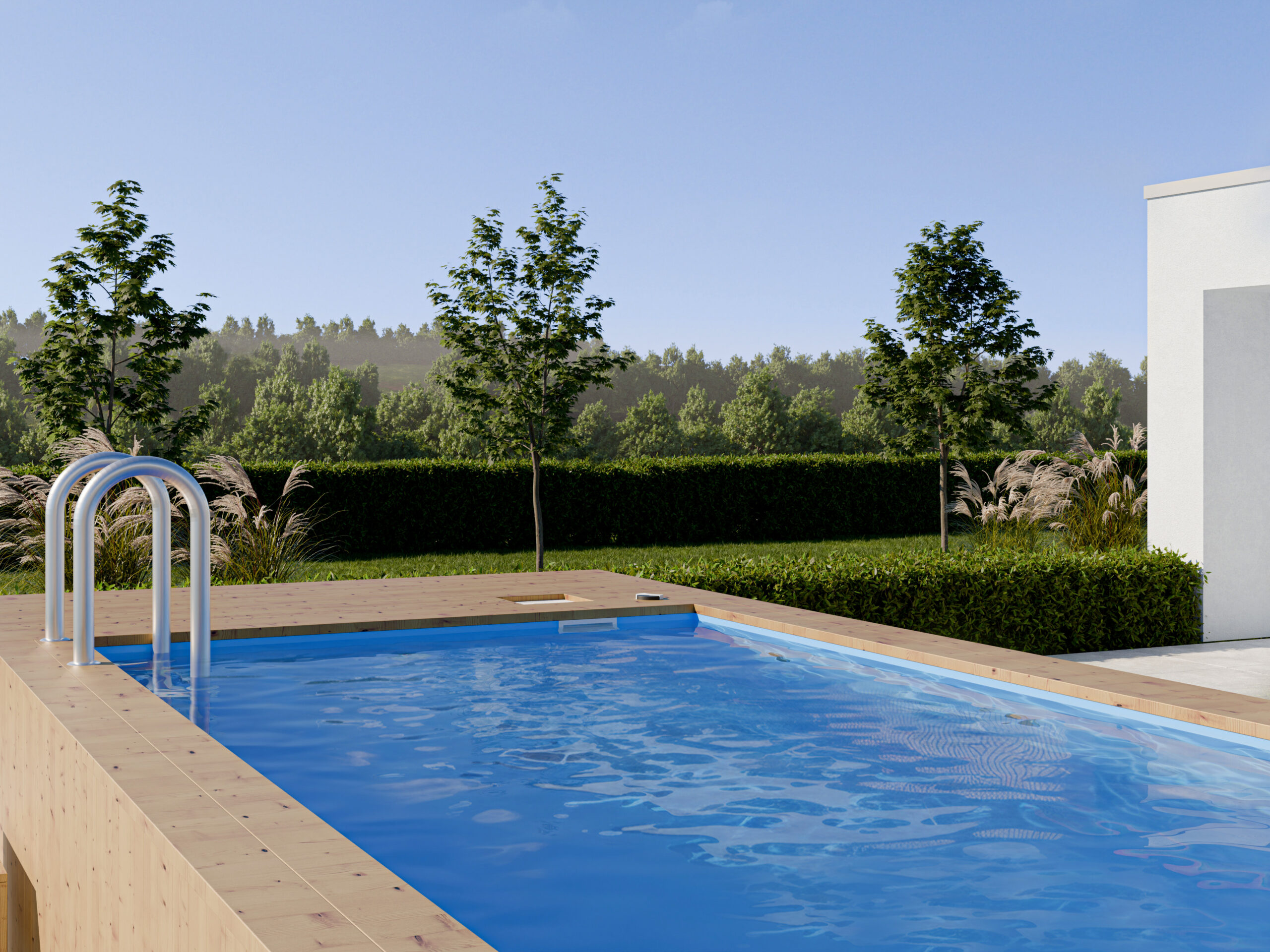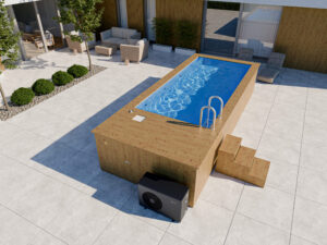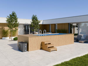 Design tego basenu ogrodowego nawiązuje do Skandynawskiej estetyki. Minimalizm i wykorzystanie naturalnego drewna tworzą przyjemne otoczenie, które pozwala na osiągnięcie maksymalnego komfortu. Inwestycja w basen to nie tylko gwarancja wypoczynku na świeżym powietrzu, ale również stylowy element dekoracyjny w Twoim ogrodzie.