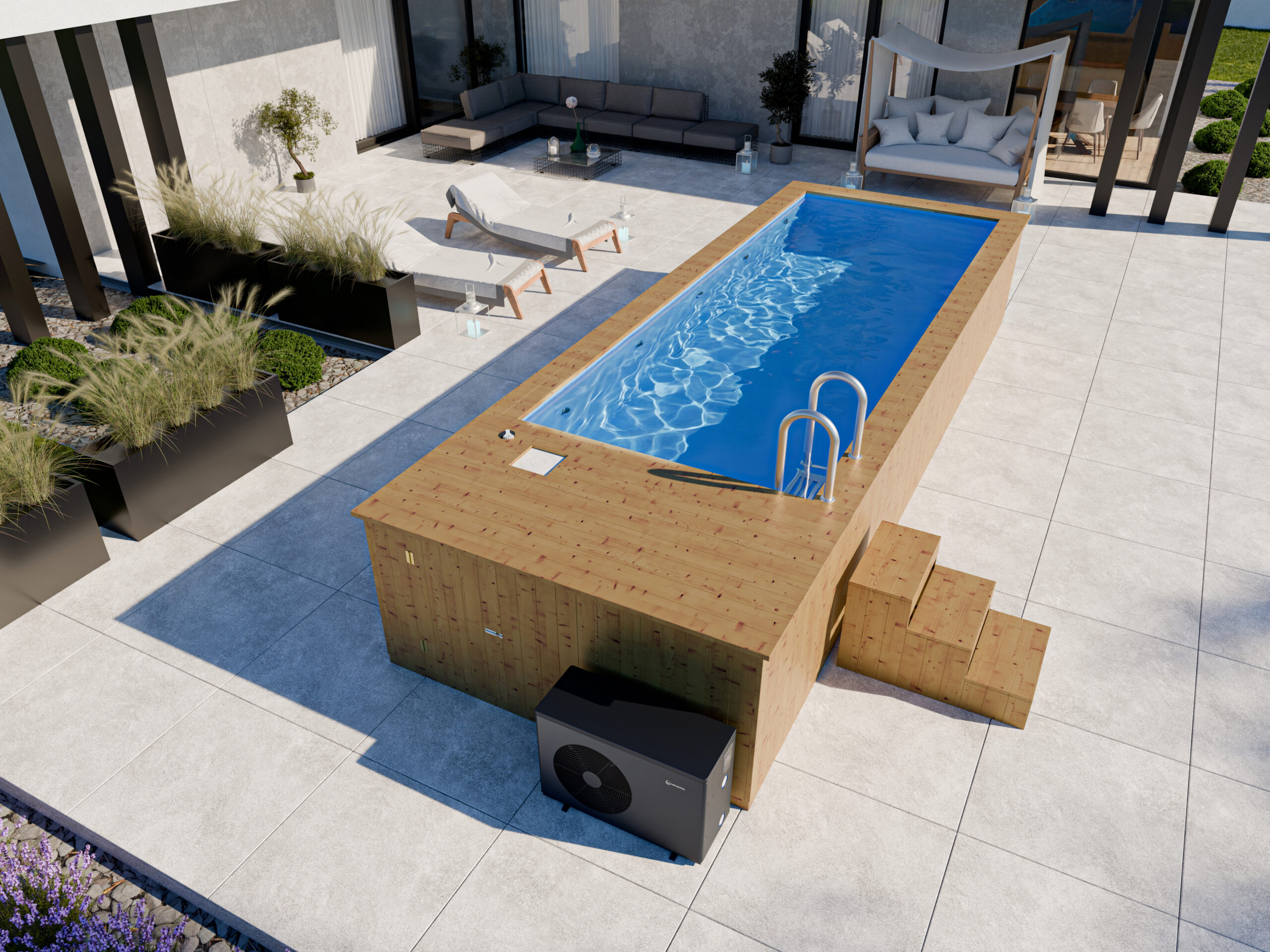 Basen ogrodowy w wersji Thermo nawiązuje swoją estetyką od popularnego stylu Skandynawskiego. Jego minimalistyczny design w połączeniu z użyciem naturalnego drewna pozwala na pełne odprężenie w przyjemnych warunkach. Decydując się na własny basen, dajesz sobie nie tylko szansę na odpoczynek na świeżym powietrzu, kiedy tylko zapragniesz, ale i zyskujesz dekorację premium na swoim ogrodzie.
