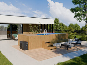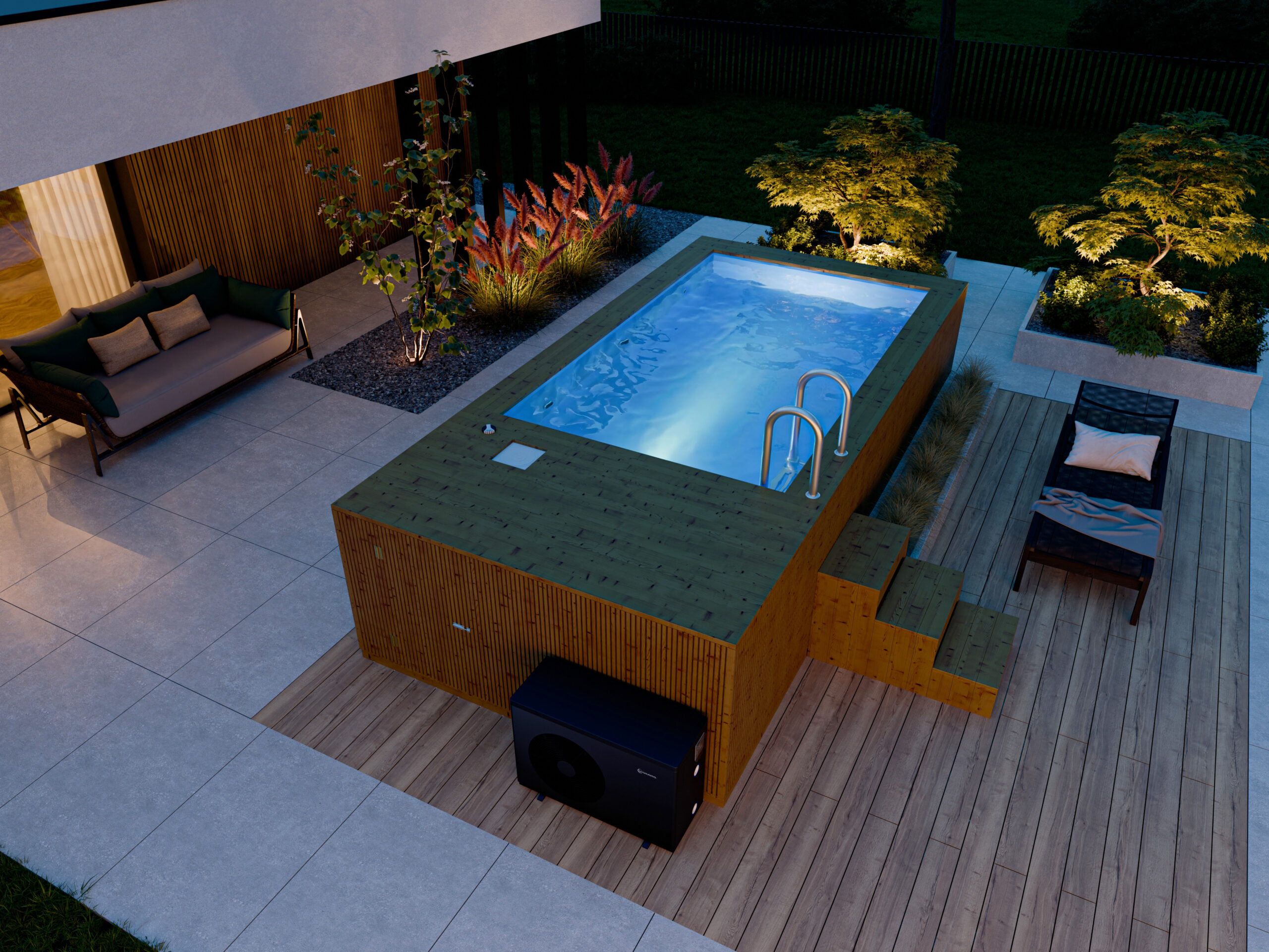 Ten model jest zwłaszcza praktyczny i zapewnia swobodny wypoczynek. Wpływa na to także wydajny filtr piaskowy, który utrzymuje wodę perfekcyjnie czystą. Za to za jej temperaturę dba zamontowana przy basenie z jacuzzi pompa ciepła o mocy 9 kW.