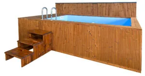 Wymiary basenu to 485 cm x 235 cm. Drewno odporne – poddane suszeniu komorowemu oraz procesowi termowania. Pojemność 6840 litrów.