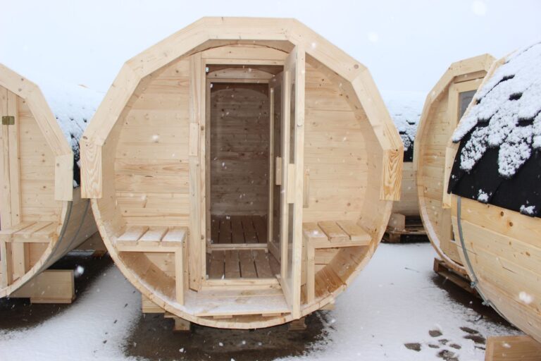 Sauna ogrodowa beczka 3,5m z balkonem i przedsionkiem