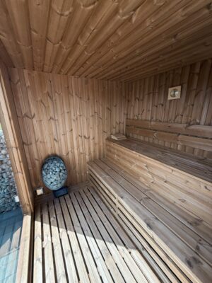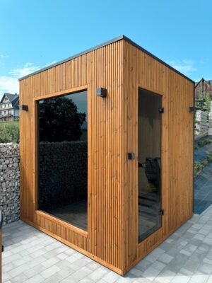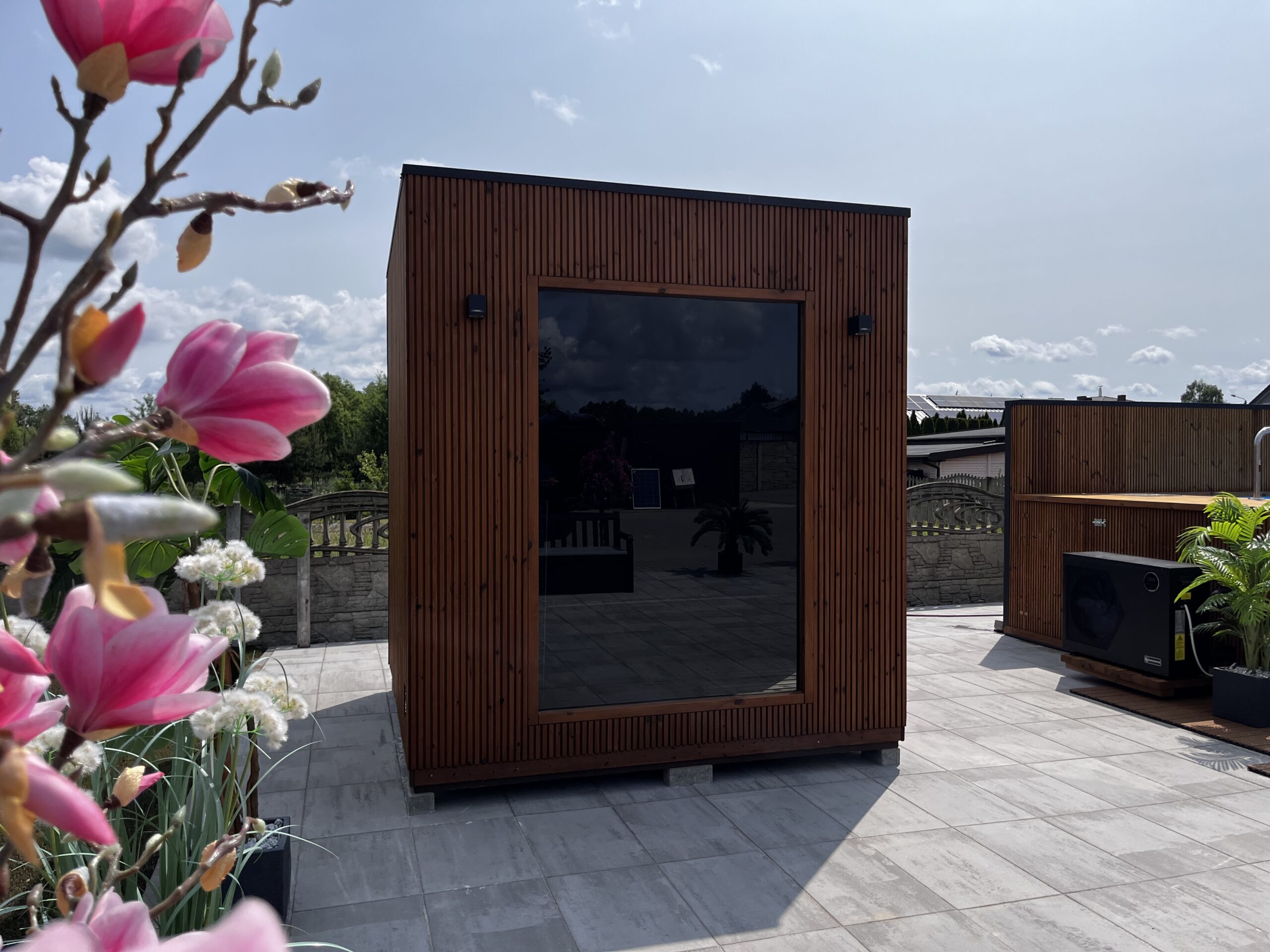 Niezależnie od tego, czy wymarzony dla nas relaks powinien przebiegać samemu, czy też z najbliższymi, w Saunie Premium bez problemu można go zrealizować. Jej metraż to aż 2,2 m x 2,2 m, dzięki czemu jest ona wystarczająco przestrzenna by była w stanie pomieścić nawet od 4 do 6 osób. Natomiast, jeżeli naszym marzeniem jest odpoczynek samemu, spędzając czas w Saunie Premium, można poczuć się spokojnie i intymnie. Wszystko to dzięki frontowej ścianie postawionej z zaciemnianego szkła hartowanego. Wówczas bez żadnego problemu możemy obserwować nasze otoczenie, jednak nikt nie jest w stanie zauważyć tego, że spędzamy czas w środku.