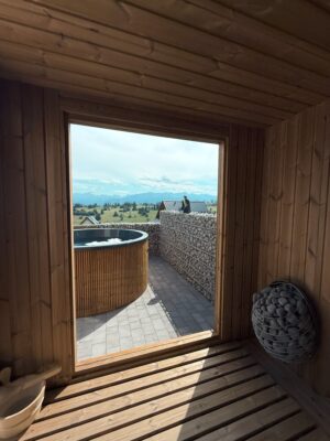 - Wykończenie wnętrza: sosna termowana, boazeria 19mm