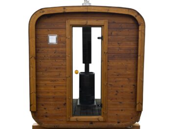 - Z zestawem saunowania – Kompletny zestaw akcesoriów: drewniany cebrzyk i chochla do polewania kamieni, klepsydra do odmierzania czasu oraz termometr z higrometrem do monitorowania warunków w saunie.