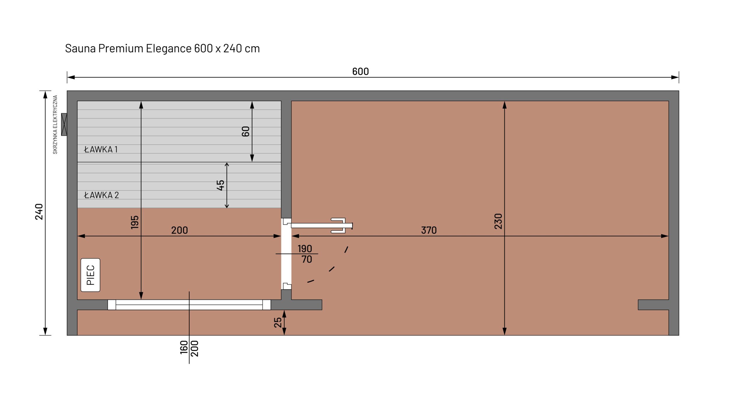 ❮ A&M / Produkty / Sauny drewniane / Zestawy SPA / Sauna Premium Elegance 600×240