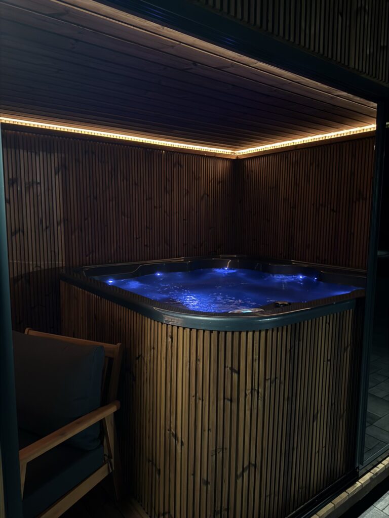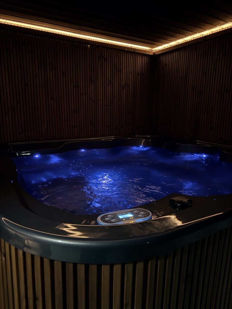 Dodatkowe punktowe oświetlenie LED wprowadza atmosferę relaksu, umożliwiając korzystanie z jacuzzi również po zmroku.