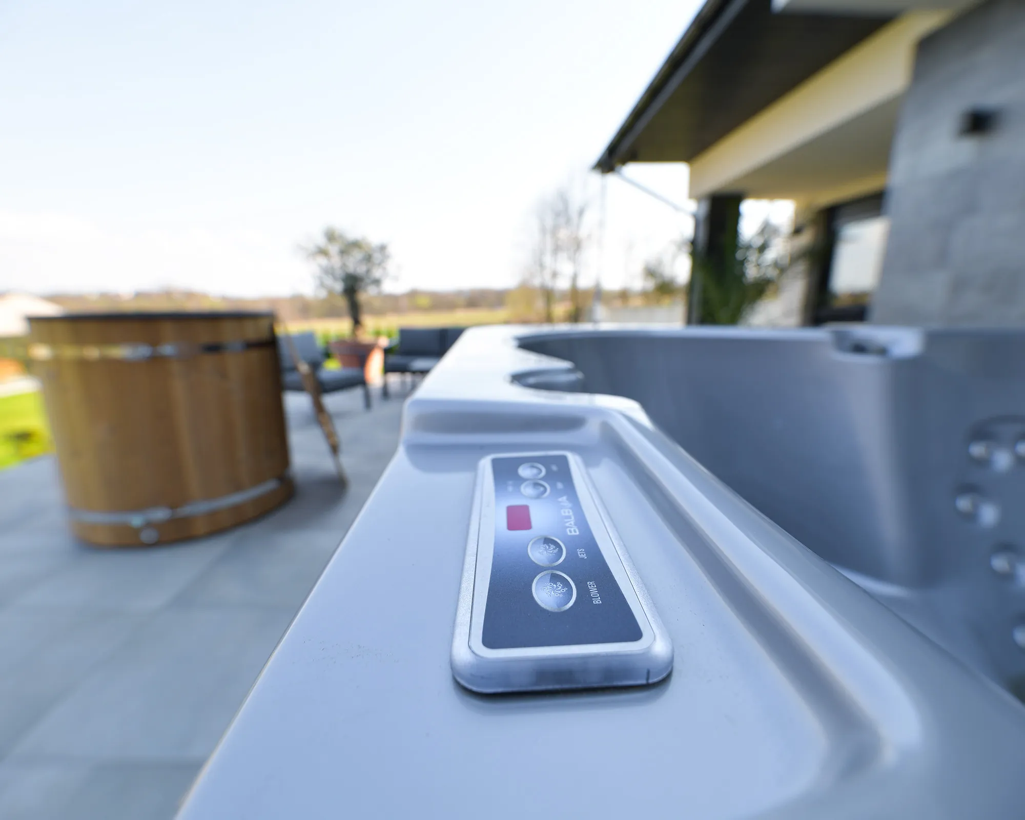 * Oferowane jacuzzi zawiera sterownik zewnętrzny BALBOA z możliwością bardzo precyzyjnej kontroli temperatury jak i dysz wodno-powietrznych poprzez zewnętrzny panel sterowania.